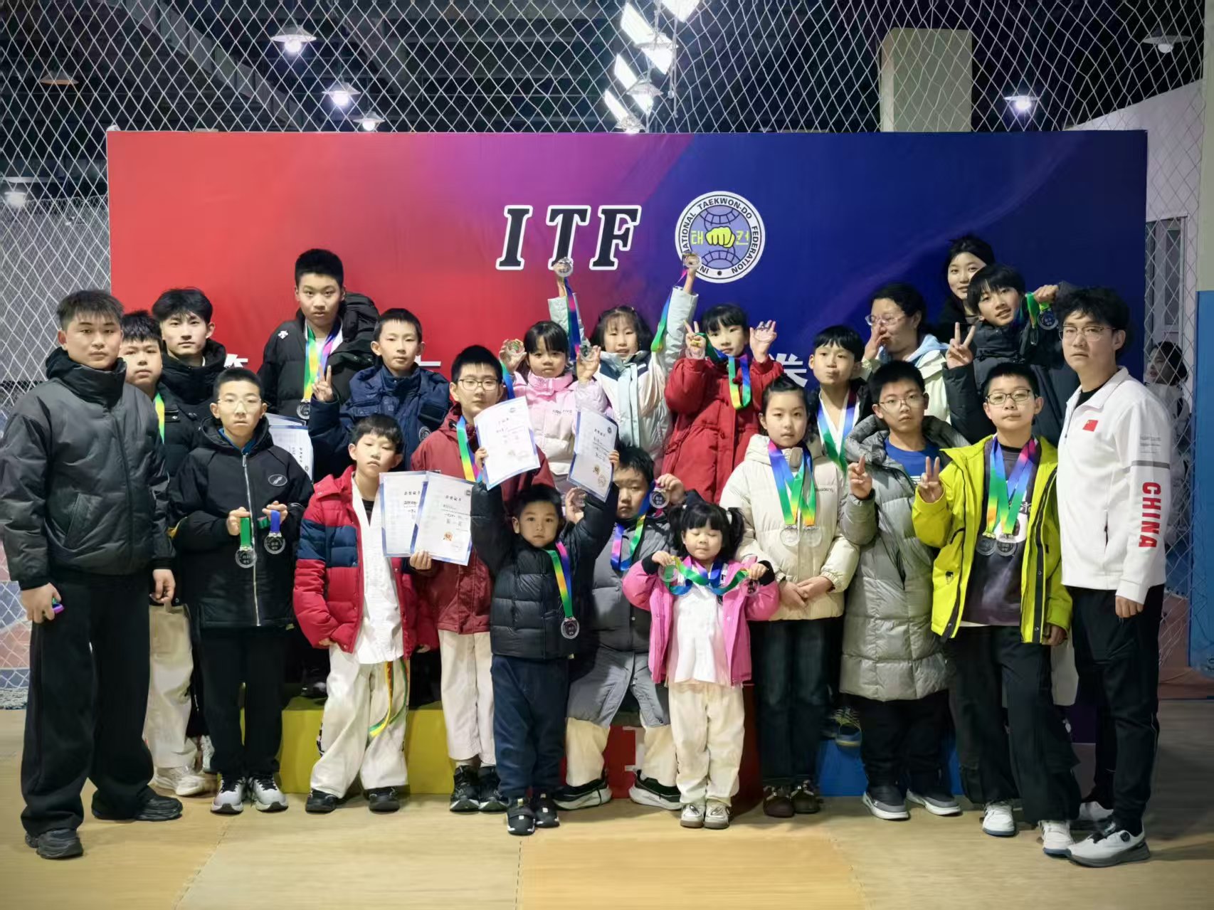 赛场之上,小选手们目光坚定、一招一式尽显扎实功底,成年选手们身手矫健、拳腿交错间迸发竞技激情;个人赛中大家全力以赴突破自我,团体赛里队员们默契配合凝聚力量,护身术比拼中更将ITF跆拳道的实战智慧与动作精准度展现得淋漓尽致。每一次出腿、每一套套路,都彰显着选手们对跆拳道运动的热爱与坚守,赛场下的相互致敬、彼此鼓励,更让“以礼始,以礼终”的武道理念深入人心。