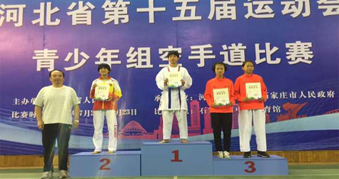 河北省,沧州市,狮城武道跆拳道馆,张子怡代表沧州市参加河北省第15届运动会,获得第一届空手道比赛,青少年组女子乙组-44公斤级冠军,省领导亲自为张子怡授予金牌以及获奖证书,是沧州市空手道比赛项目中的首枚金牌。 张子怡于2009年进入狮城武道跆拳道馆...